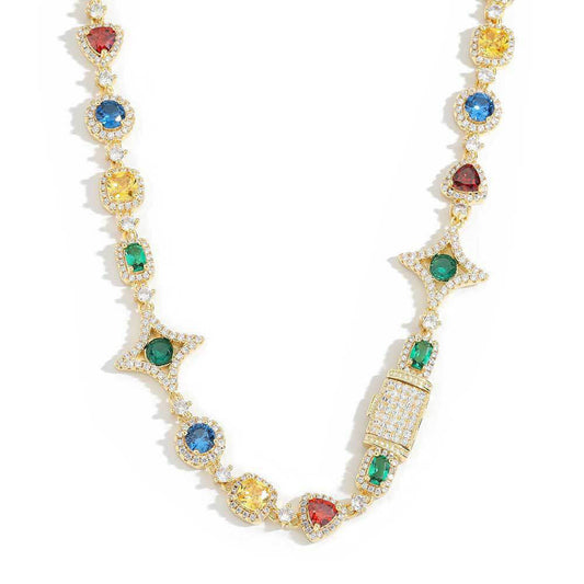Colar Europeu e americano hip-hop versátil colorido pedras preciosas